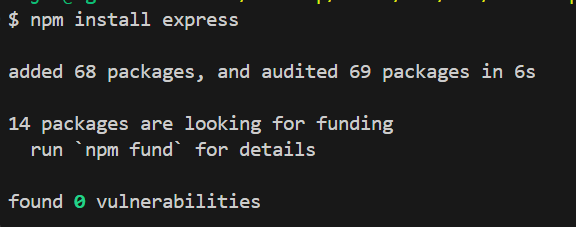 그리고 express를 사용하기위해서 npm을 통해서 express를 설치해주자.
