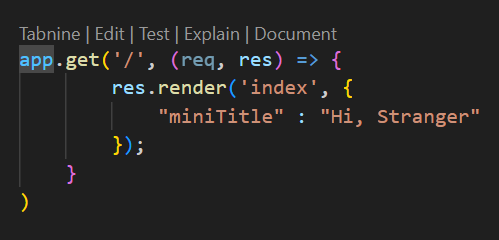 두번째 매개변수는 해당 파일을 렌더링 시키면서 전달할 값을 key-value의 형태로 제공해줘야 한다.