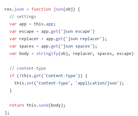 Express를 사용하면 http를 사용해서 서버를 생성했을때와 다르게 응답 상태코드나, 어떤 Content-Type같은걸 따로 지정하지 않아도 내부적으로 알아서 처리해서 설정해준다.
