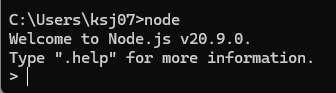 이렇게 Node.js를 설치해줬으면 자바스크립트를 실행할 수 있는 노드 환경으로 진입을 할 수 있는데 이 노드환경으로 들어가기 위한 명령어는 node만 입력해주면 된다.