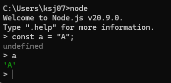 이 REPL환경에 진입하기 위해서는 위에서 봤다 싶이 node라는 명령어를 입력해서 REPL환경에 진입할 수 있다.