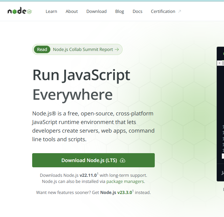 구글에서 Node.js를 입력해서 첫번째로 나오는 공식 홈페이지로 들어가주자.