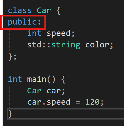 Car car{120, "black"};