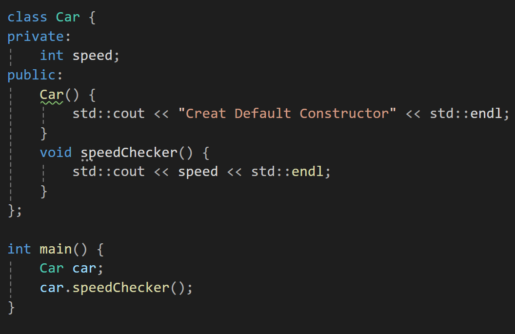 이렇게 구현되어 있을때 speed는 초기 값이 들어가 있지 않기 때문에 호출하면 쓰레기 값이 출력되게 된다.