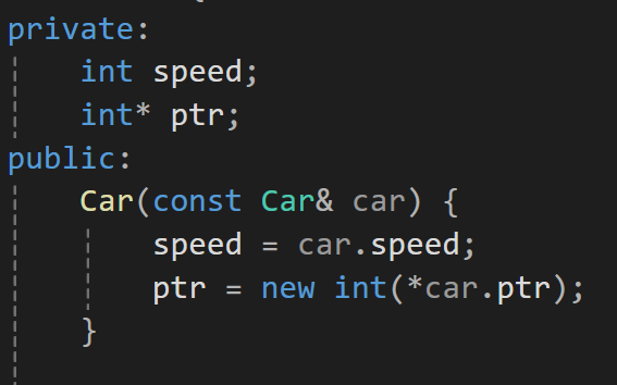 이 생성자가 호출되는 시점은 객체를 다른 객체로 초기화하거나( Car b = a ), 객체를 함수의 인자로 넘길 때(값으로, func(Car a)), 함수가 객체를 값으로 반환할 때(return a) 호출된다.