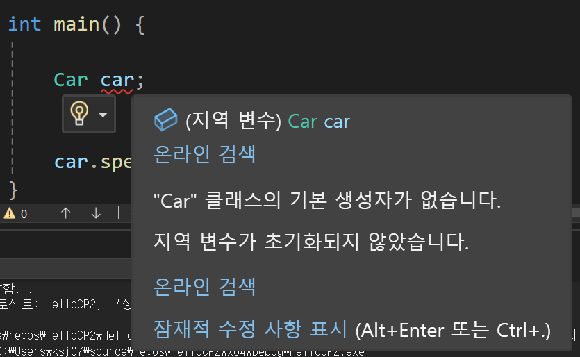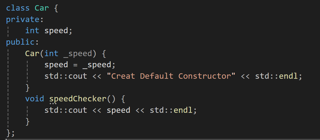 std::cout << car.speed << std::endl; // 0이 출력됨