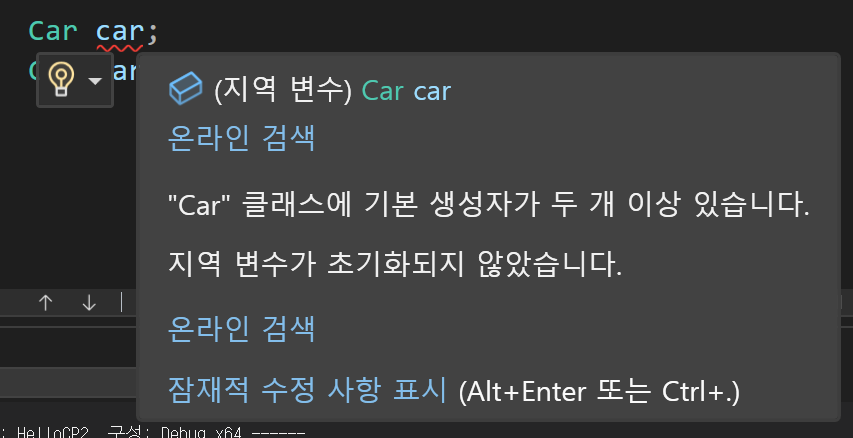 이렇게 디폴트 생성자를 호출하는 객체 생성파트에서 디폴트 생성자가 두개라고 나오는 에러가 발생할 수 있다.