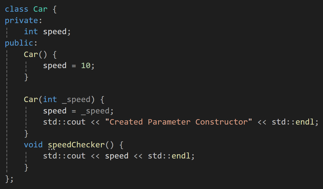이렇게 구현되어 있을때 speed는 초기 값이 들어가 있지 않기 때문에 호출하면 쓰레기 값이 출력되게 된다.