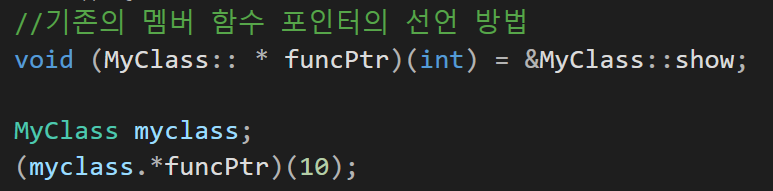 //멤버 함수 포인터의 기존 사용 방식