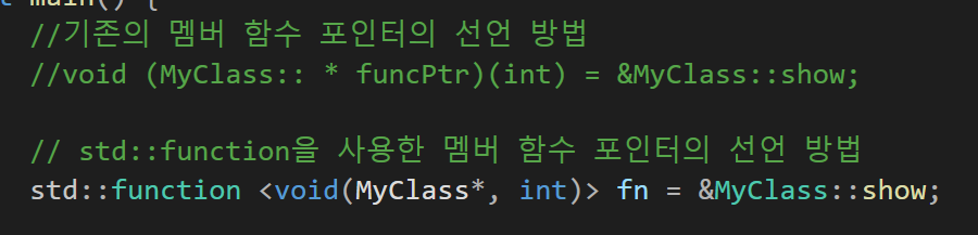 //멤버 함수 포인터의 기존 사용 방식