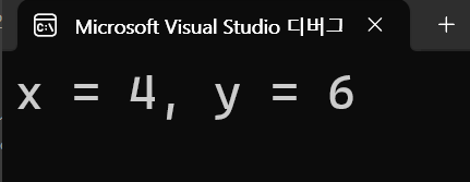 std::cout << "x = " << x << ", y = " << y << std::endl;