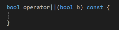AND연산자와 OR 연산자의 경우는 오버로딩 하려면 먼저 뼈대만 먼저 만들어보면 우선 둘 다 이항 연산자기에 먼저 매개변수가 필요해진다.