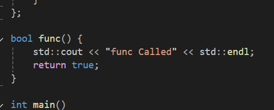 이 비교를 할때 s가 true가 나온다면 func()가 실행되지 않는 단락연산을 수행해서 func 함수의 출력문이 출력되면 안될텐데