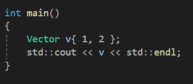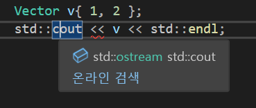 먼저 우리가 이전에 만들었던 Vector 클래스를 cout으로 넘겨주는 연산을 한번 확인해보자.