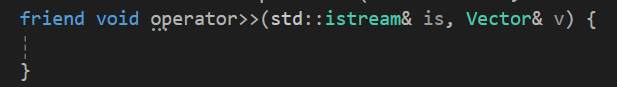istream타입이니 반환형은 void에 매개변수 첫 번째로는 istream객체를 참조로 받아주고 두번째 매개변수로는 Vector의 값을 변경해야 함으로 그냥 Vector객체를 참조값으로 받아주자.
