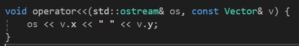 os << "Vector x : " << v.x << ", Vector y : " << v.y;