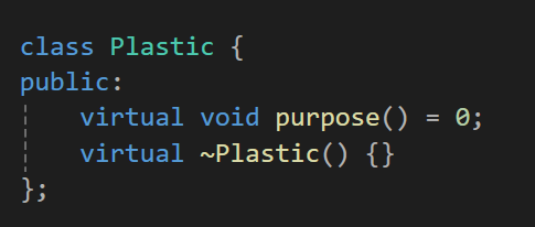 이렇게 Plastic이라는 클래스가 순수 가상함수가 생기는 순간 추상클래스가 된다.