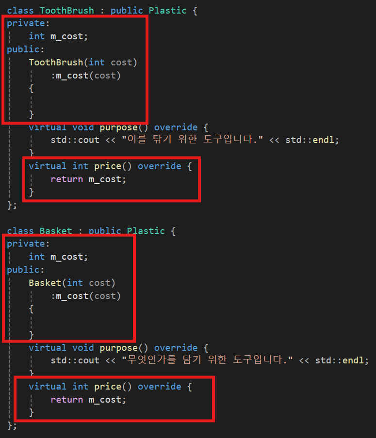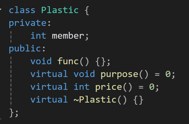 이렇게 Plastic이라는 클래스가 순수 가상함수가 생기는 순간 추상클래스가 된다.