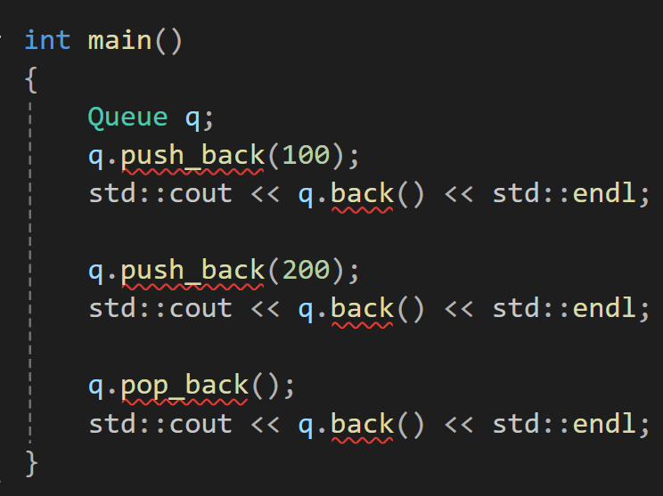 Queue가 상속받은 vector의 기능을 가지지 않고 Queue본연의 기능만을 가지는것을 볼 수 있다.