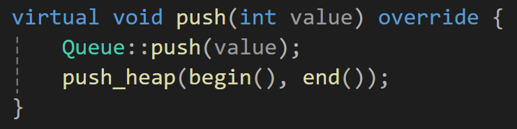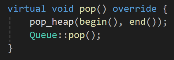 그리고 pop함수도 동일하게 Queu의 기능으로 변경해주고 pop 이전에 pop_heap을 넣어주자.
