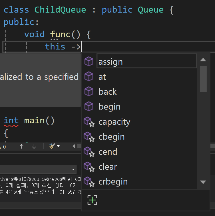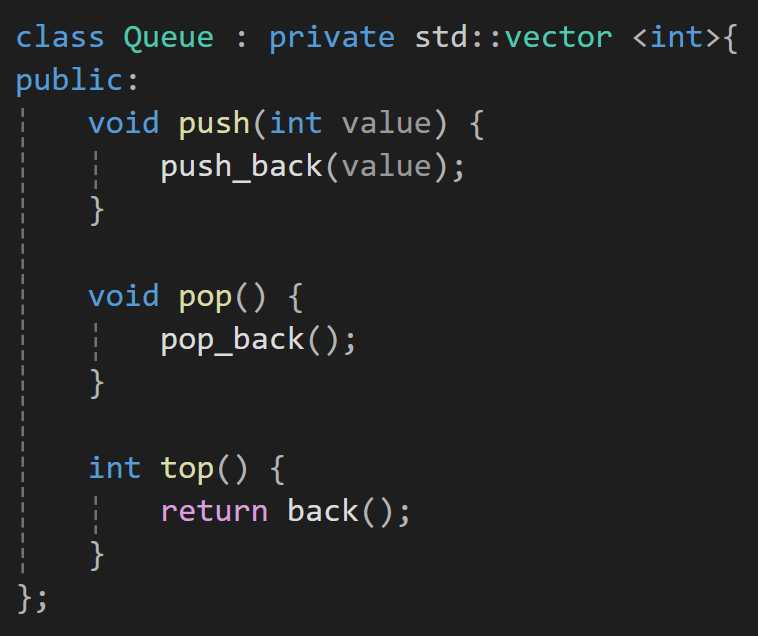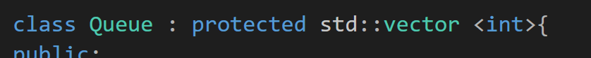 그리고 protected로 vector를 상속 받았던 Queue를 public으로 상속 받고 Queue의 모든 기능을 가져와서 오버라이드 해보자.