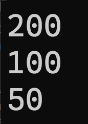 이제 객체를 하나 생성해주고 순서대로 값을 100 - 200 - 50을 넣어준 후에 하나 씩 빼면서 마지막 값을 출력해보자.