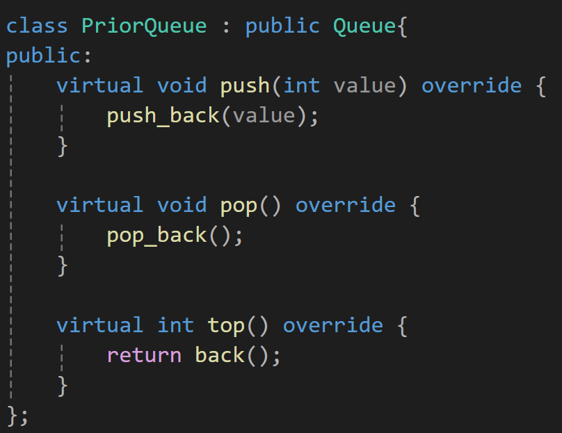 그리고 protected로 vector를 상속 받았던 Queue를 public으로 상속 받고 Queue의 모든 기능을 가져와서 오버라이드 해보자.