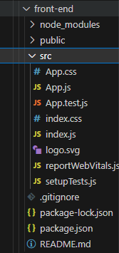 이제 react가 설치가 진행되고 익스플로러 쪽에 보면 내가 지정한 front-end라는 디렉토리가 추가된것을 볼수 있다