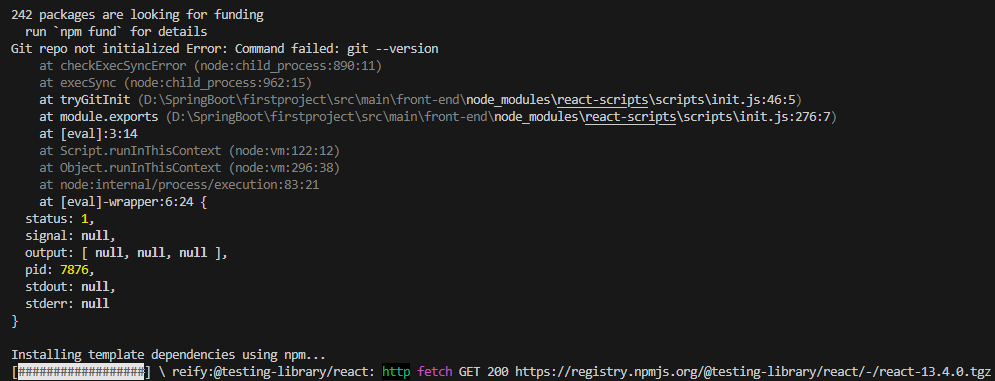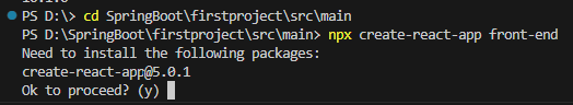 PS D:\SpringBoot\firstproject\src\main>npx create-react-app front-end