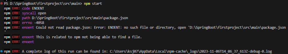 PS D:\SpringBoot\firstproject\src\main\front-end> npm start