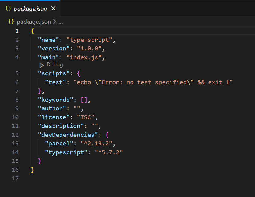 parcel을 통해서 타입스크립트를 실행시키고 빌드할 것이기 때문에 실행시키는 명령어인