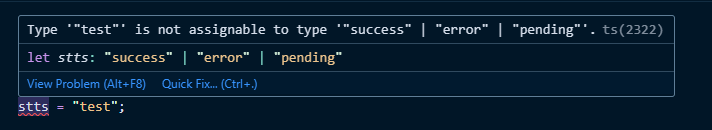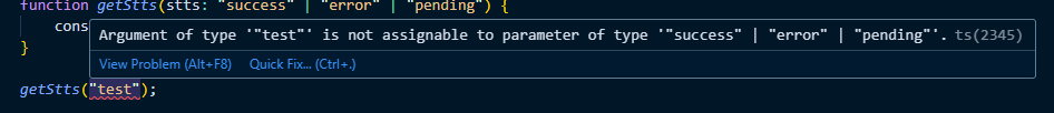 이렇게 모든 조건에 할당 되지 않으면 myColor라는 값이 어떤 값도 가질 수 없다고 판단하며 myColor가 never로 할당된다.
