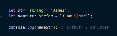 let 변수명 : string = `문자열`; // ``, 백틱을 사용