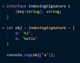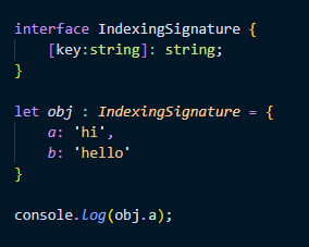 이 인덱싱 시그니쳐를 성정해주면 []를 사용해서 속성을 조작하는 것이 가능해진다.
