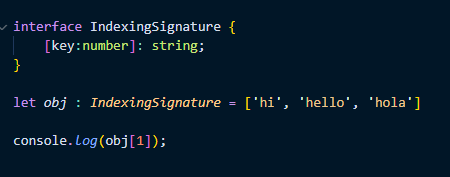 인덱싱 시그니쳐는 [] 대괄호로만 바뀐 형태를 띄고 있다.
