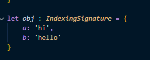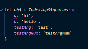 아무튼 이렇게 인덱싱 시그니쳐를 사용한 배열형태의 객체를 만드는 방법을 확인해봤고 다음은 그냥 객체형태를 사용한 경우인데 key를 string 타입으로 지정하고