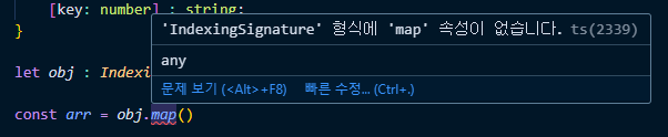 이렇게 사용하는게 문제가 없지만 이 때 만약 인덱싱 시그니쳐가 인터페이스에 존재하지 않다면