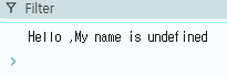 아래와 같이 코드가 작성되어 있다 하더라도 컴파일 에러를 발생시키지는 않지만 이전처럼 undefined를 출력한다.