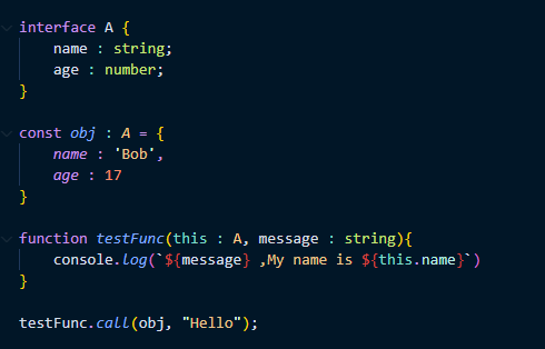 function 함수명(this: 타입(보통 객체의 타입), ...): ReturnType {