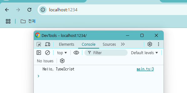 이렇게 타입스크립트를 사용하는 서버를 1234포트, 로컬호스트로 열어준 것을 볼 수 있다.