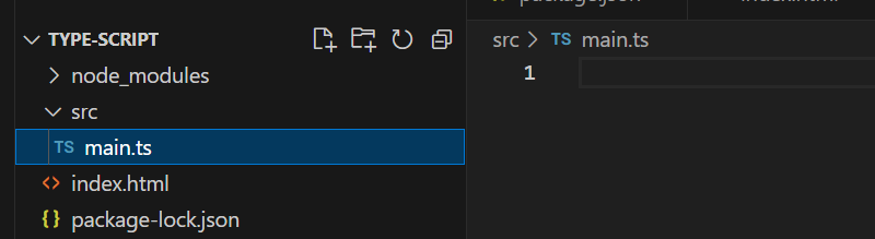 이 안에 main이라는 폴더를 만들어 줄건데 js파일이 아니라 타입스크립트인 ts를 확장자로 사용해서 생성해주자.