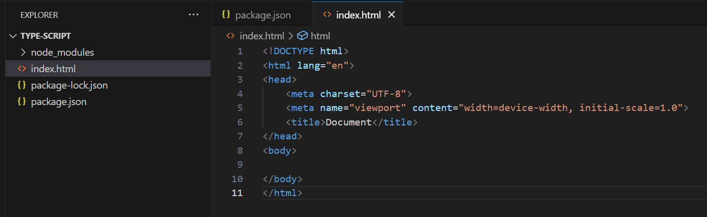 그리고 이 index.html에 타입스크립트 파일을 하나 연결해주려고 한다.