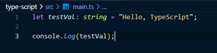 main.ts파일에 변수하나를 let으로 생성해주고 숫자를 한번 할당해보자.